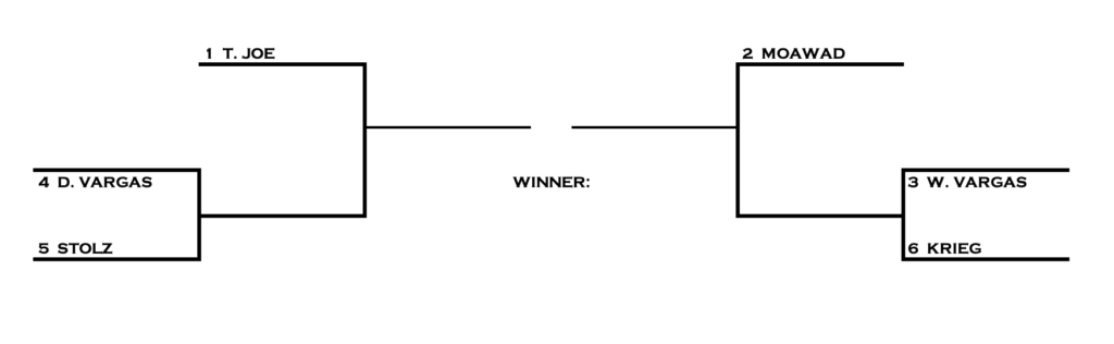 Eric Stolz (2-6): In 2022, as a 4-seed, upset #2 Walter Vargas in the semi-finals, advancing to the Finals for the first time in his career; lost to defending champion Chris Moawad 3and1. 0-0 vs. D. Vargas and 0-1 vs. Tim Joe